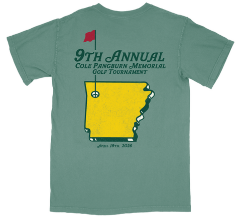 Built around a classic, Augusta-inspired aesthetic with an Arkansas twist, this design connects instantly with those who love the beauty of golf and the people you share it with. It’s a meaningful way to show up, remember Cole, and be part of something that continues to bring us together year after year.