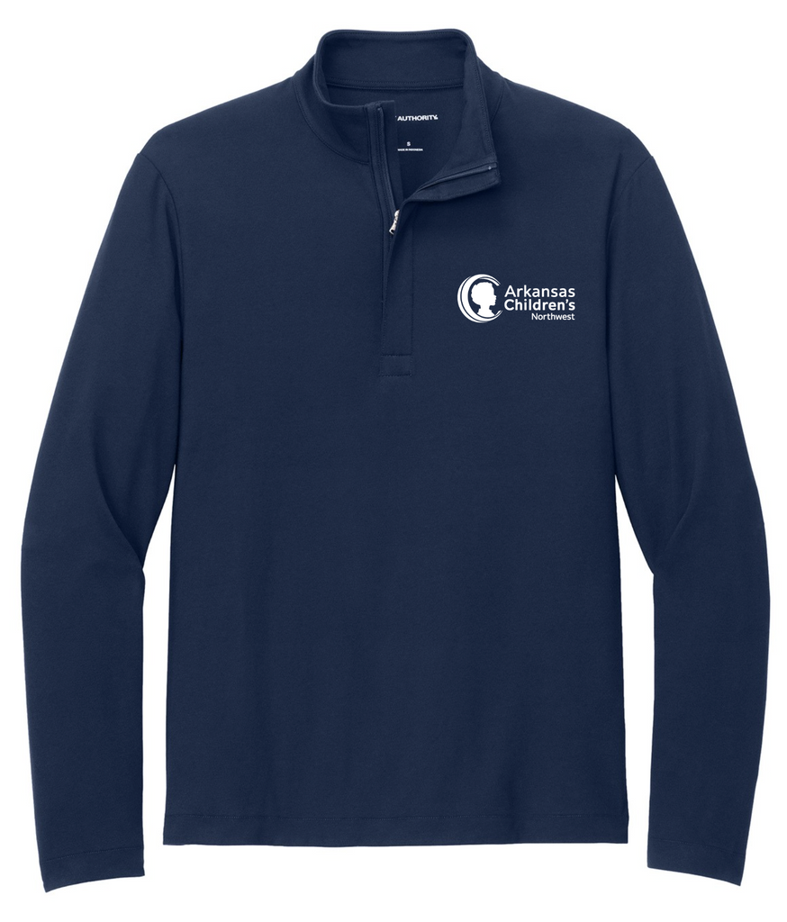 This design will be embroidered and available to purchase on a Port Authority Men's Fairway Stretch 1/4-Zip in River Blue Navy. The fit is true to size. Â