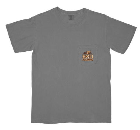 This design will be screen printed and available to purchase on a Comfort Colors pocket tee in the color gray. The fit is true to size.Â