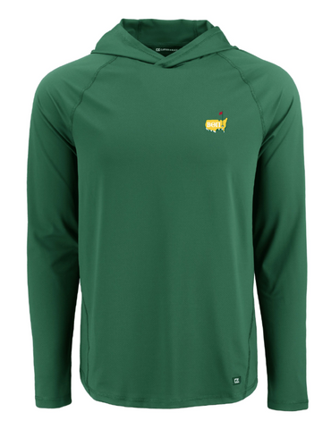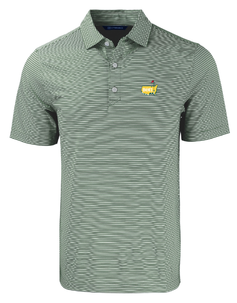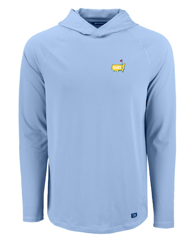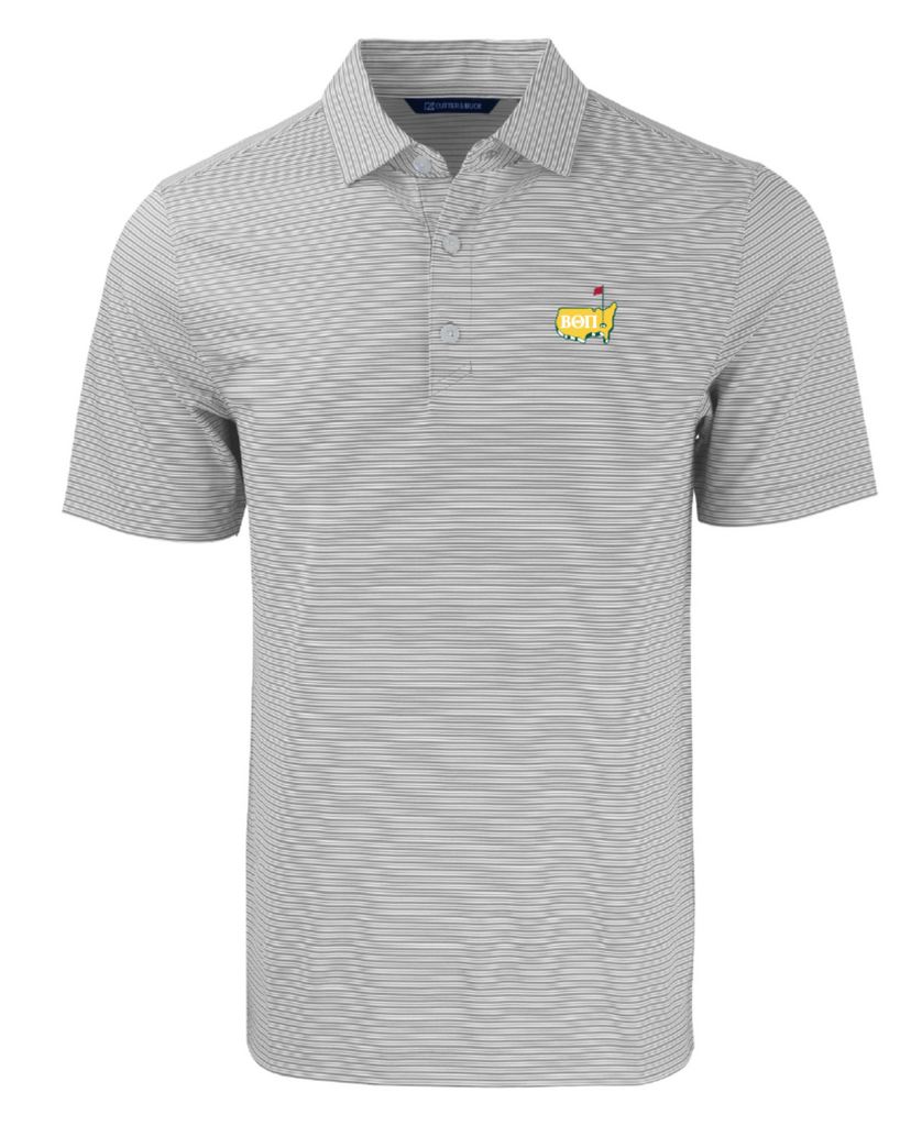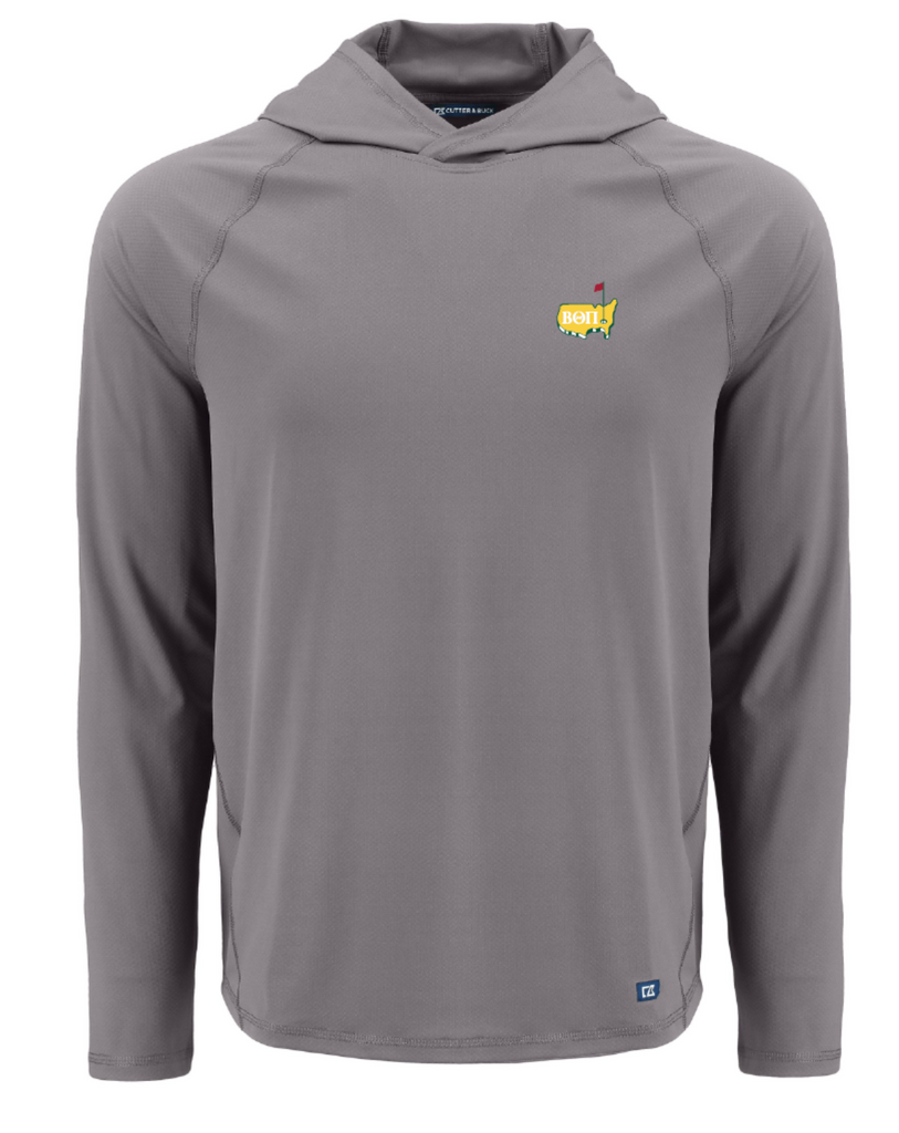 This design will be screen printed and available to purchase on a Cutter & Buck performance double striped polo and performance hoodie in the colors light blue, light gray, and hunter green. The fit is true to size.Â