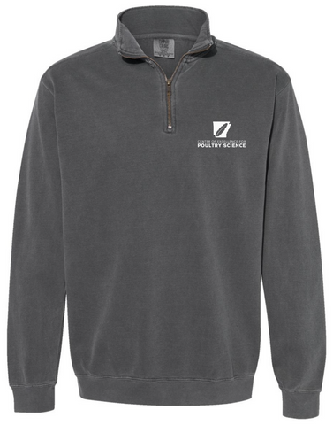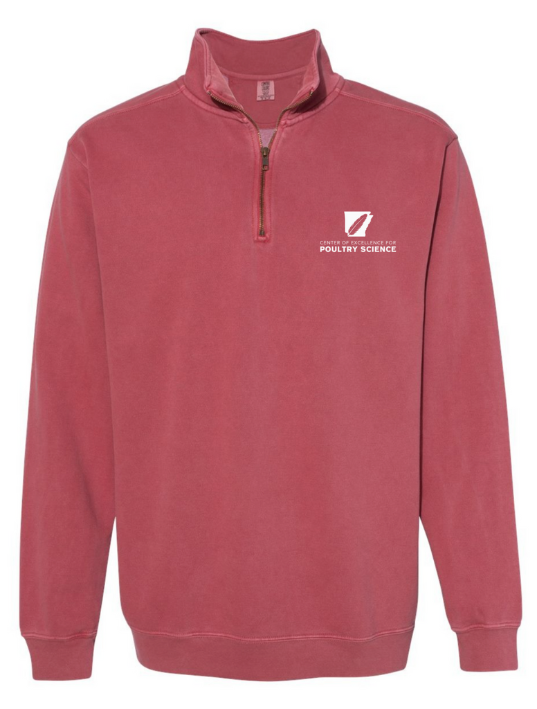 This design will be embroidered and available to purchase on a Comfort Colors crewneck and 1/4 zip in Crimson, Flo Blue, and Pepper. The fit is true to size. Â