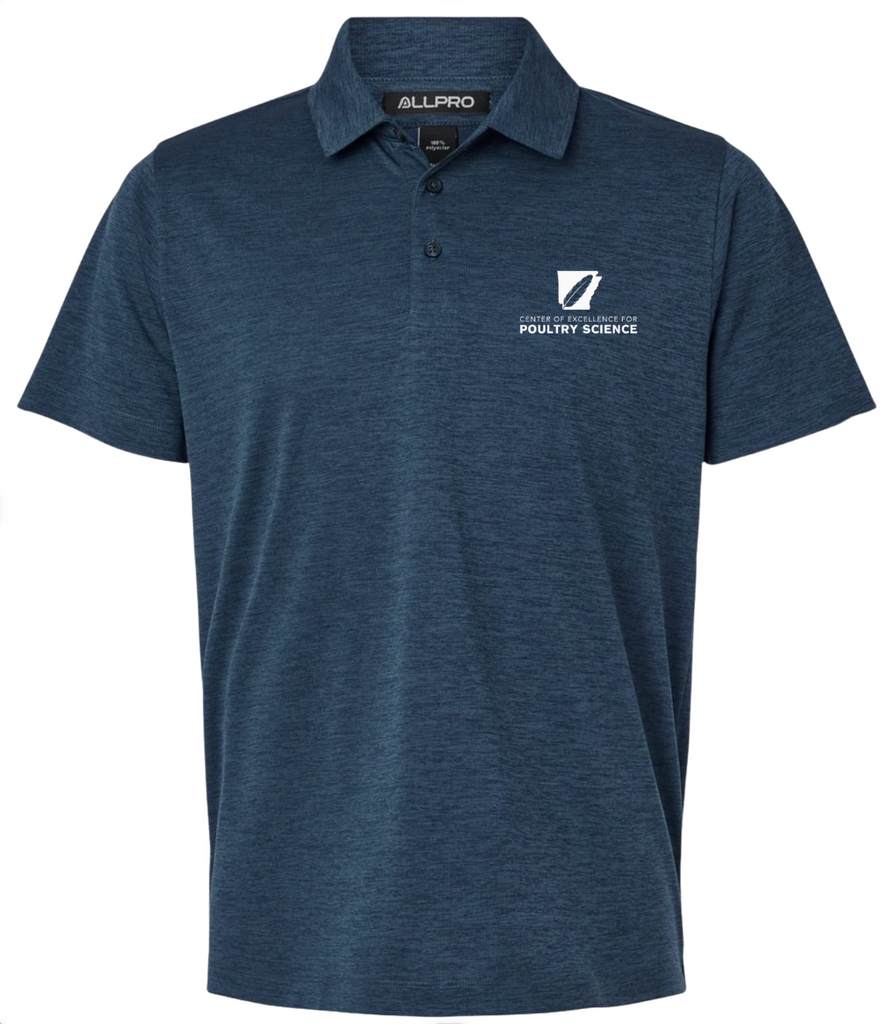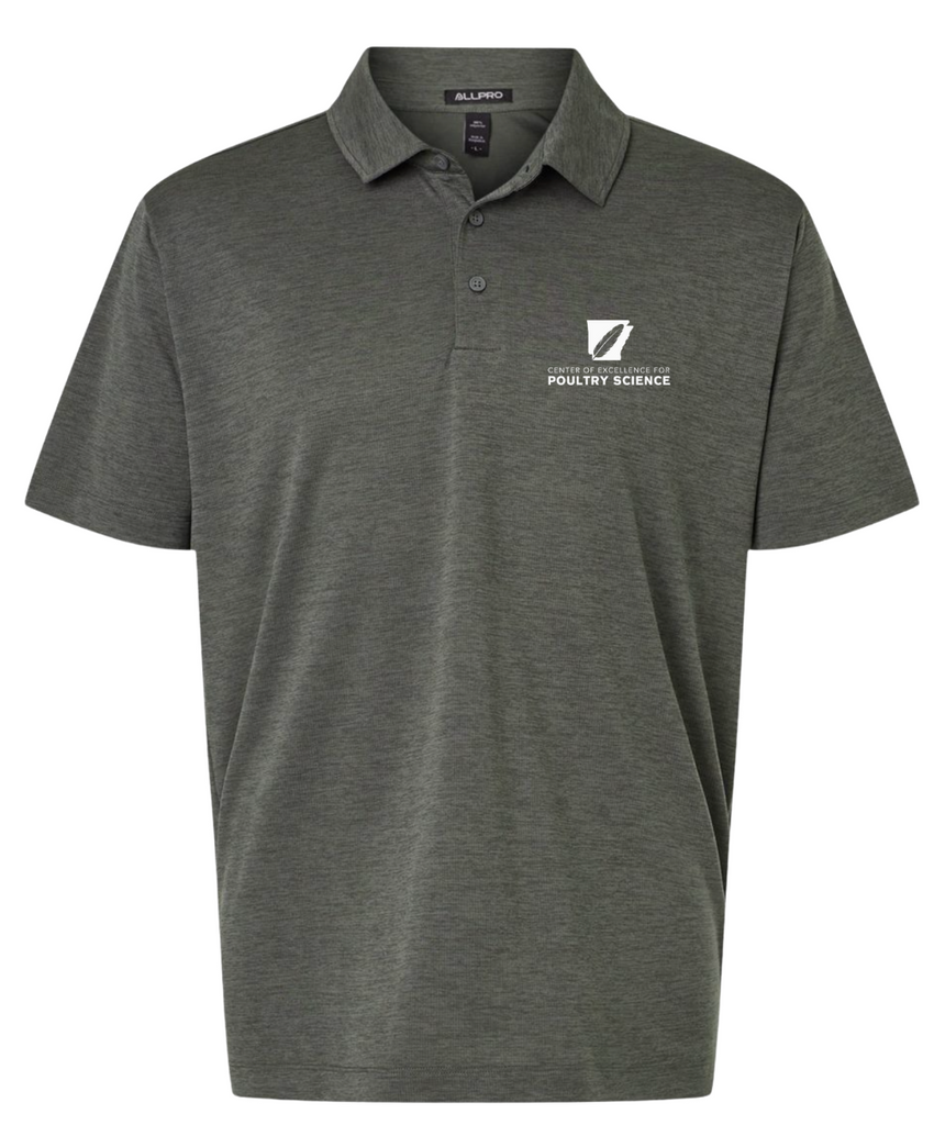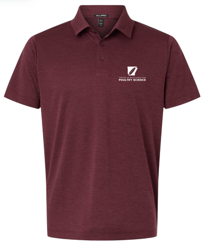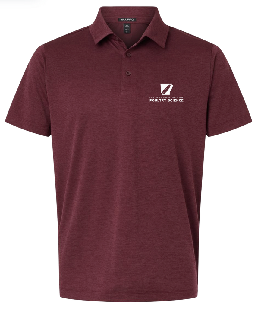 This design will be embroidered and available to purchase on an AllPro Melange Micro Mesh Polo in Charcoal, Maroon, Silver, and Navy.