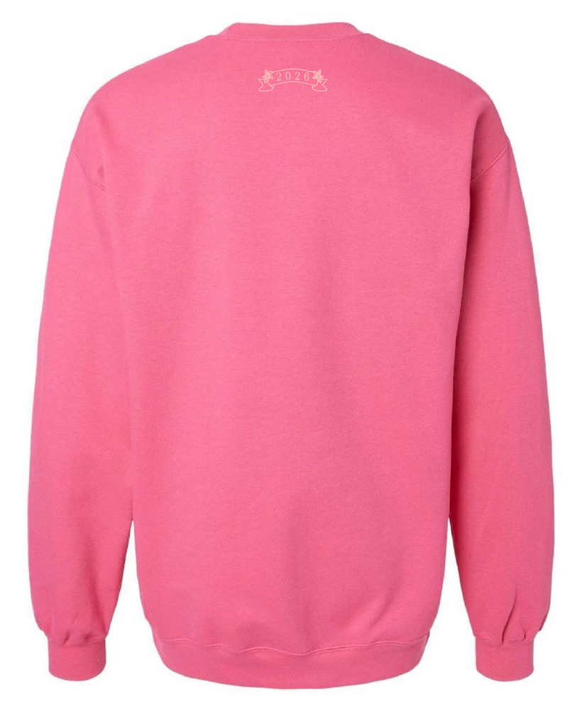This design will be screen printed and available to purchase on a Midweight Crewneck in the color pink lemonade. The fit is true to size.Â