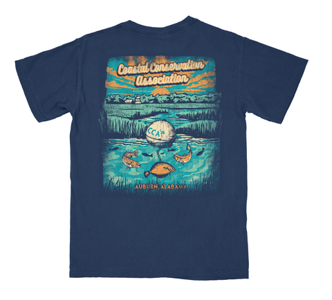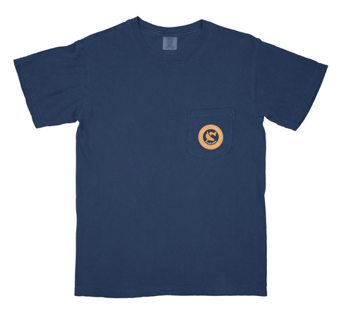 This design will be screen printed and available to purchase on a Comfort Colors pocket tee in the color Midnight. The fit is true to size.Â
