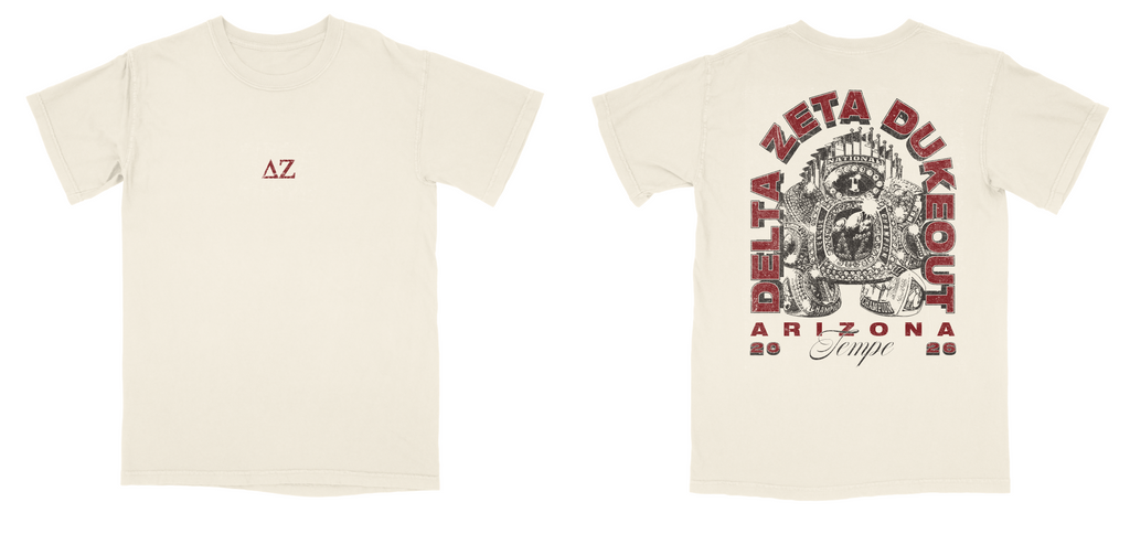 EACH ORGANIZATION ARE REQUIRED TO PURCHASE A MINIMUM OF 36 TO RECEIVE THEIR GREEK LETTERS ON THE FRONT OF THEIR ITEMS - IF NOT, THE DELTA ZETA GREEK LETTERS WILL BE PRINTED.