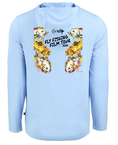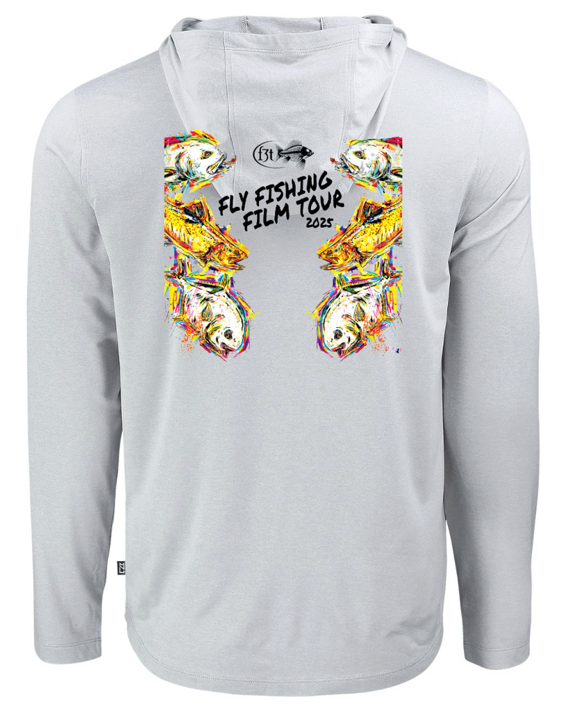 This design will be screen printed and available to purchase on a Cutter & Buck performance hoodie in Chambray, Butter, and Granite. The fit is true to size. Â