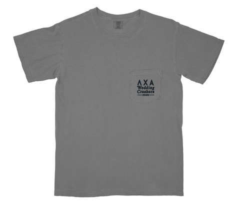 This design will be screen printed and available to purchase on a Comfort Colors pocket tee in the colors Washed Denim and Grey. The fit is true to size.Â