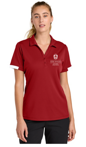 This design will be embroidered and available to purchase on a Sport-Tek® Club Colorblock Polo in Red and Black. The fit is true to size.Â