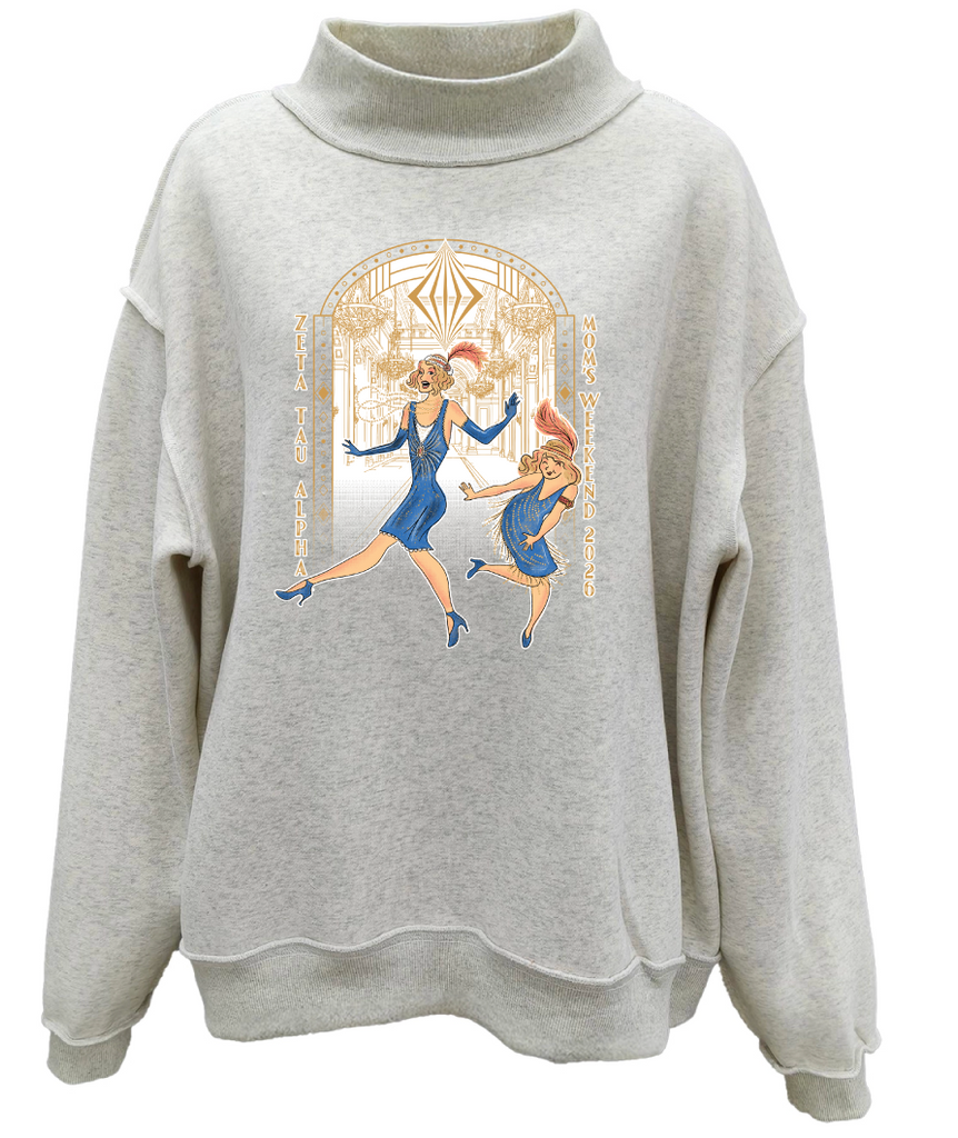 This design will be screenprinted and available to purchase on Bucketlist Mock Neck in Ash. The fit is true to size.Â